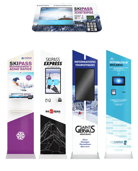 Dynappli propose la fabrication de bornes personnalisables à votre charte graphique. Ces solutions modulables et flexibles peuvent être interactives, intégrer un module de paiement ou d’affichage dynamique