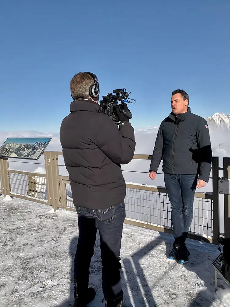 Nous avons eu le plaisirs d’emmener l’équipe d’Optimis Prod au sommet de l’aiguille du Midi à plus de 3800 mètres d’altitude pour une interview rafraichissante!!