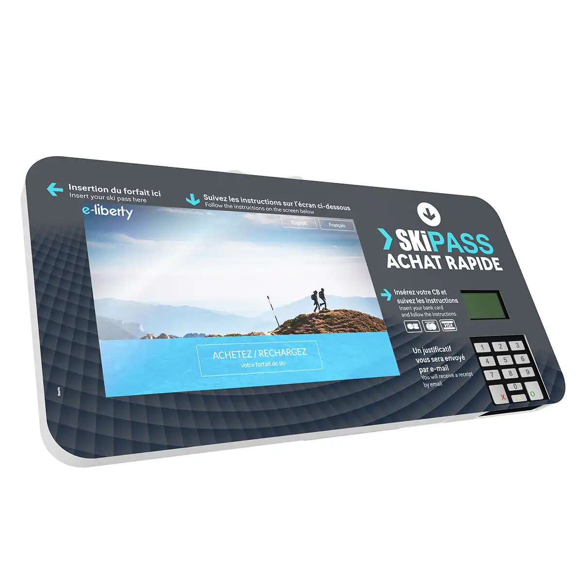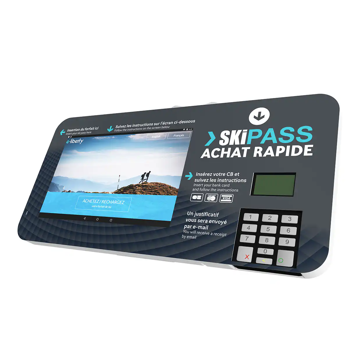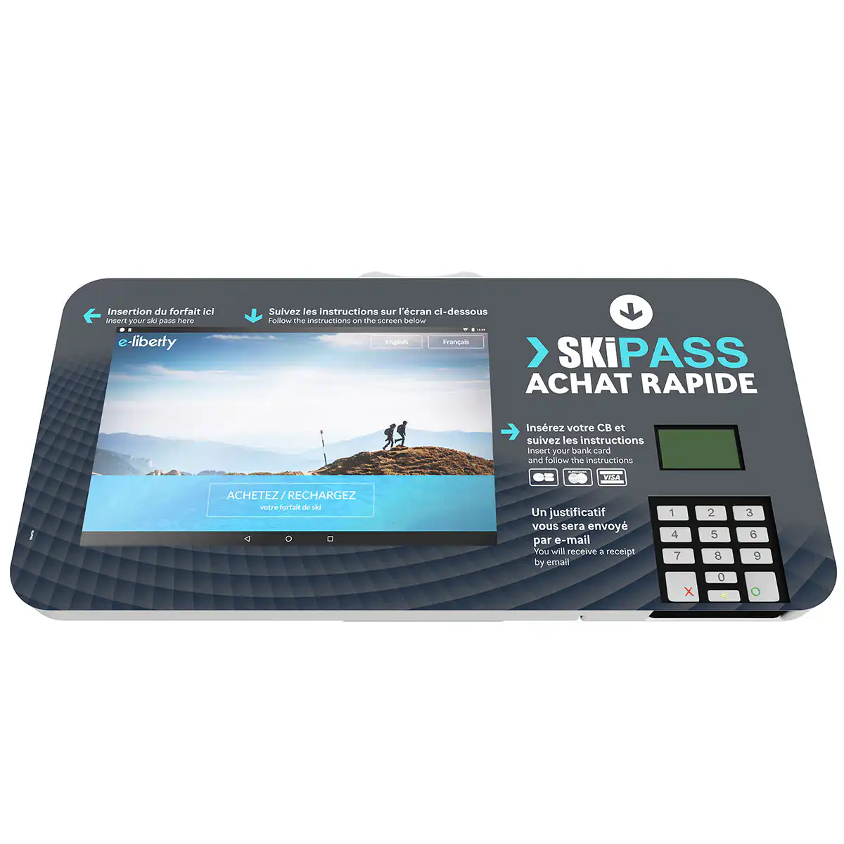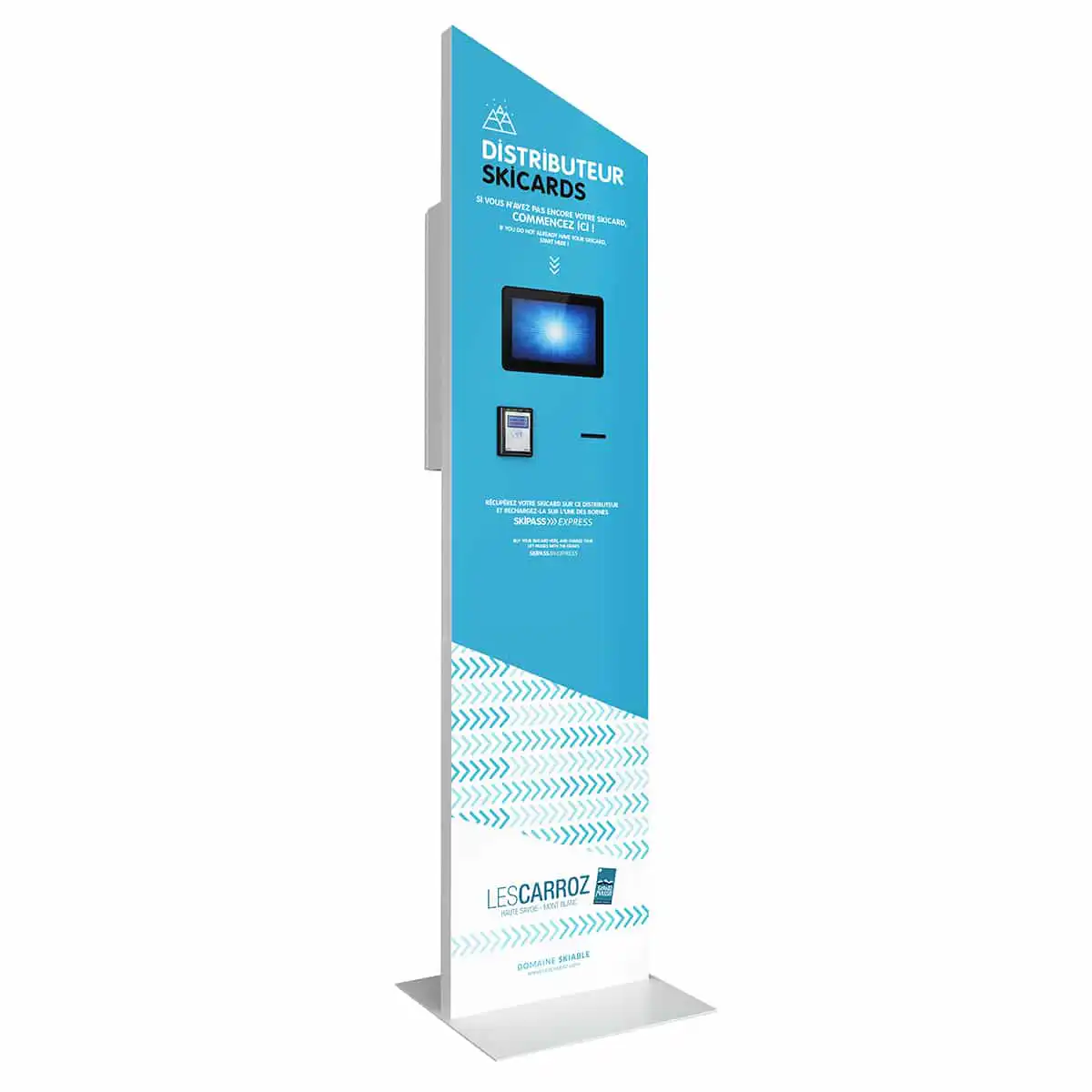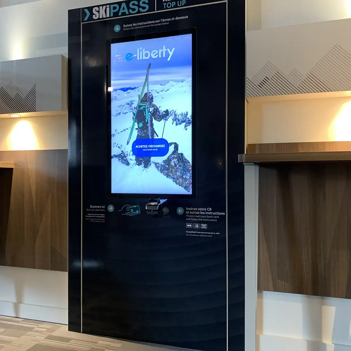 L’automate est dédié à la commande des skicards vierges en payant directement via le paiement sans contact.