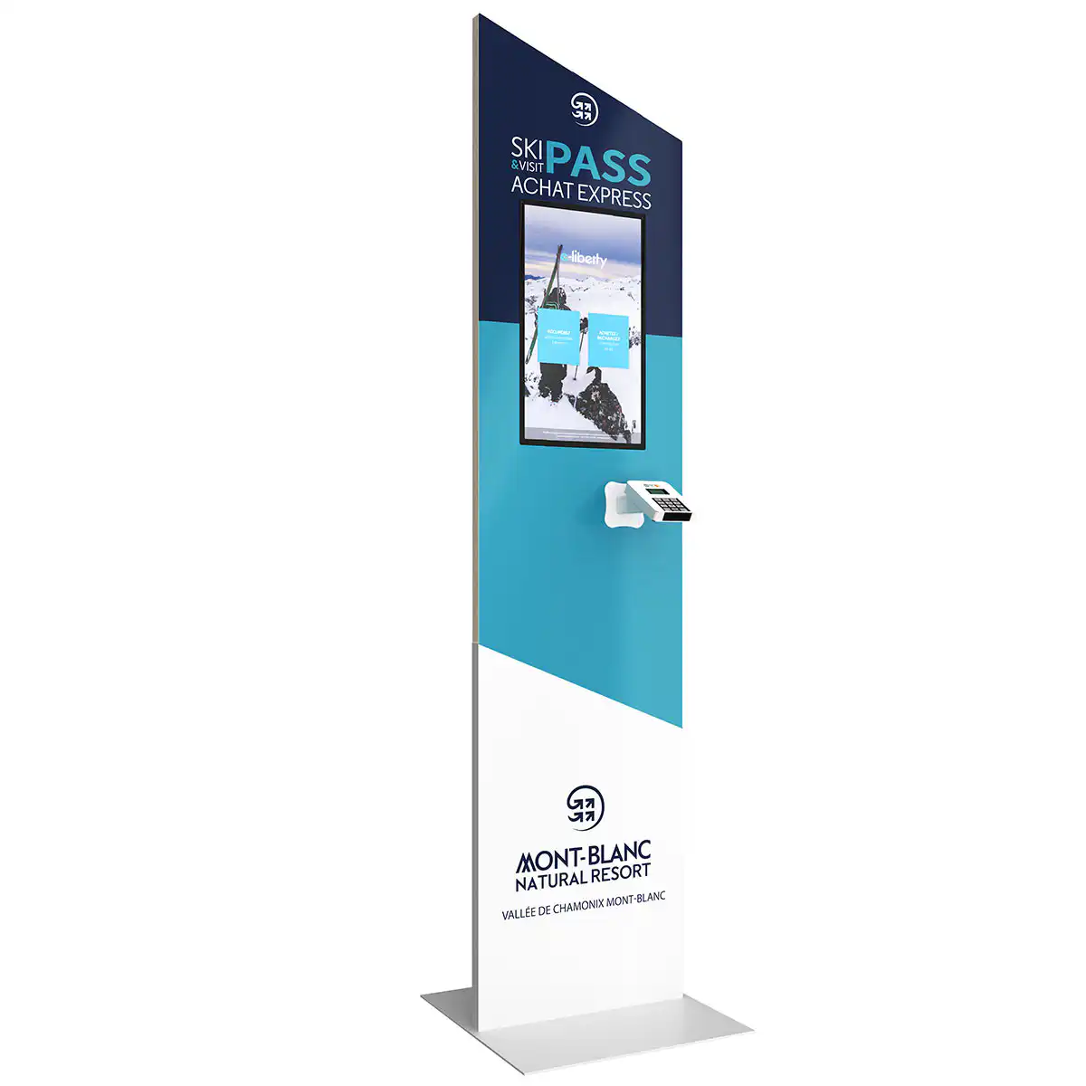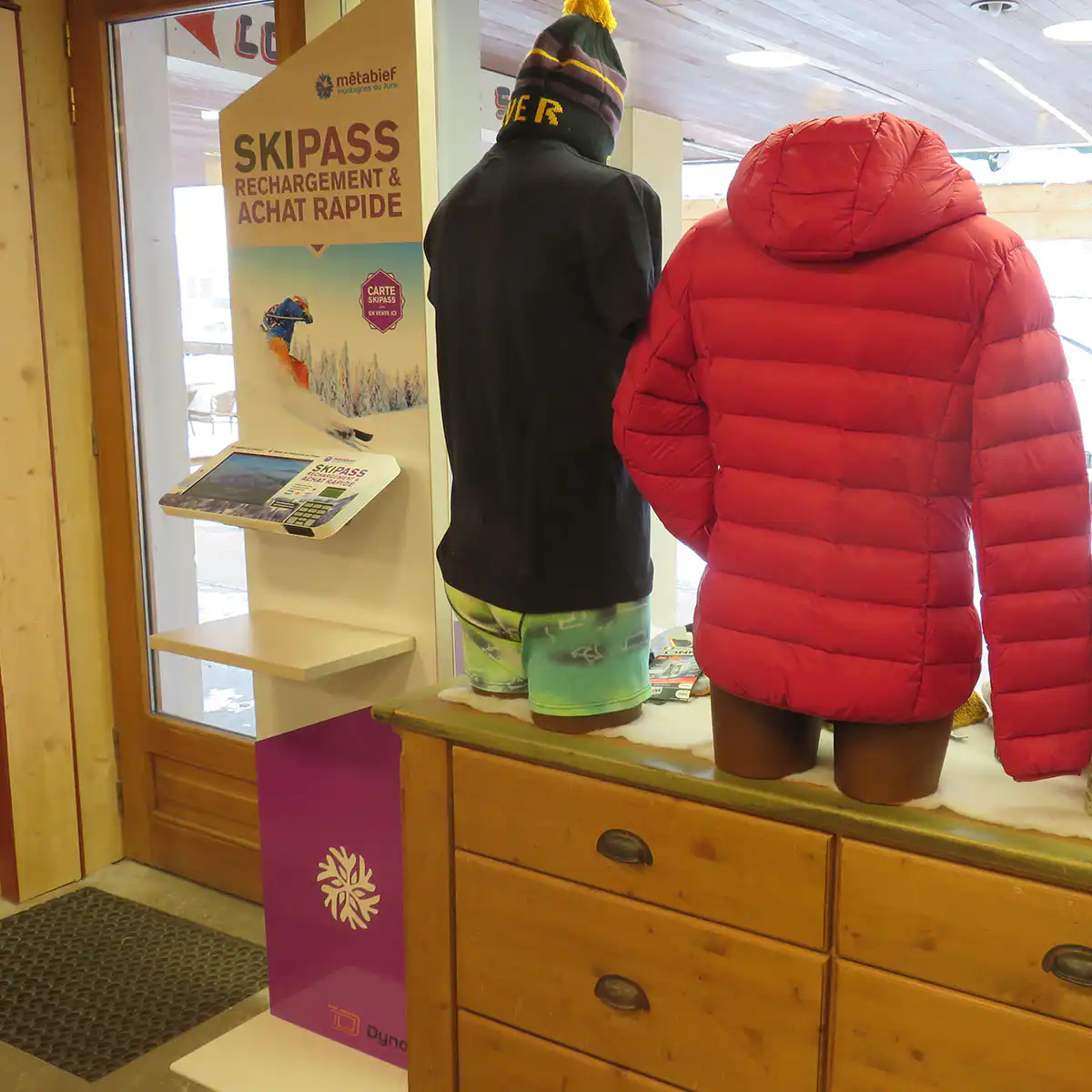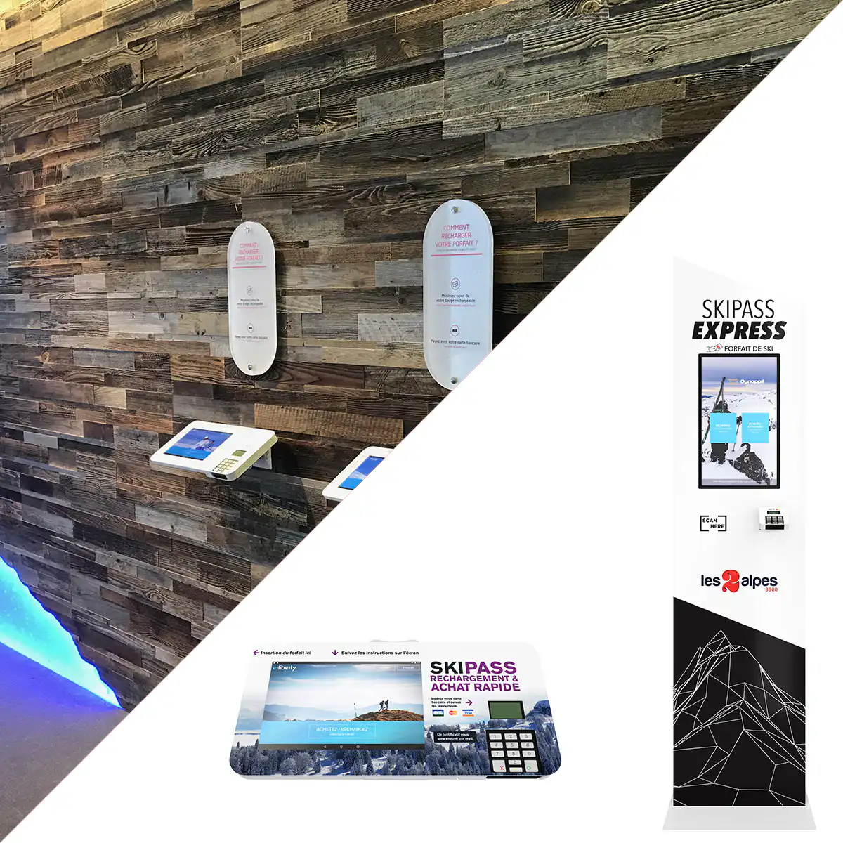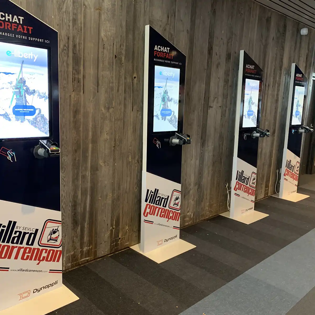 Conscient de l’importance de la présentation et de la visibilité des bornes pour les stations, Dynappli propose également une offre complète d’aménagement de point de vente pour le rechargement de forfaits ski. Création d’un espace digital avec différents écrans de commande ou encore intégration d’écrans muraux dans un espace de vente dédié, découvrez nos solutions :