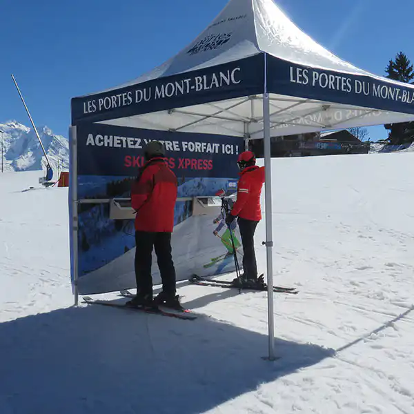 Le stand événementiel est une offre que nous proposons aux stations souhaitant proposer un stand de rechargement de forfaits éphémère. Il est alors possible de louer un stand de vente de forfait de ski pour une manifestation temporaire, comme un salon ou des manifestations sportives ou culturelles.