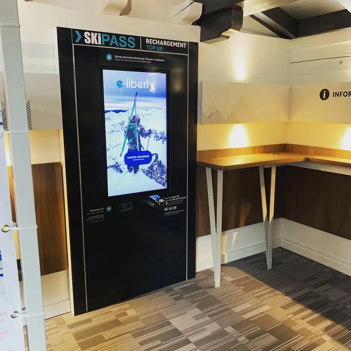 Afin de proposer toujours plus de liberté et d’améliorer le parcours client au maximum, nous proposons d’ajouter à l’espace digital un distributeur autonome de ski cards.